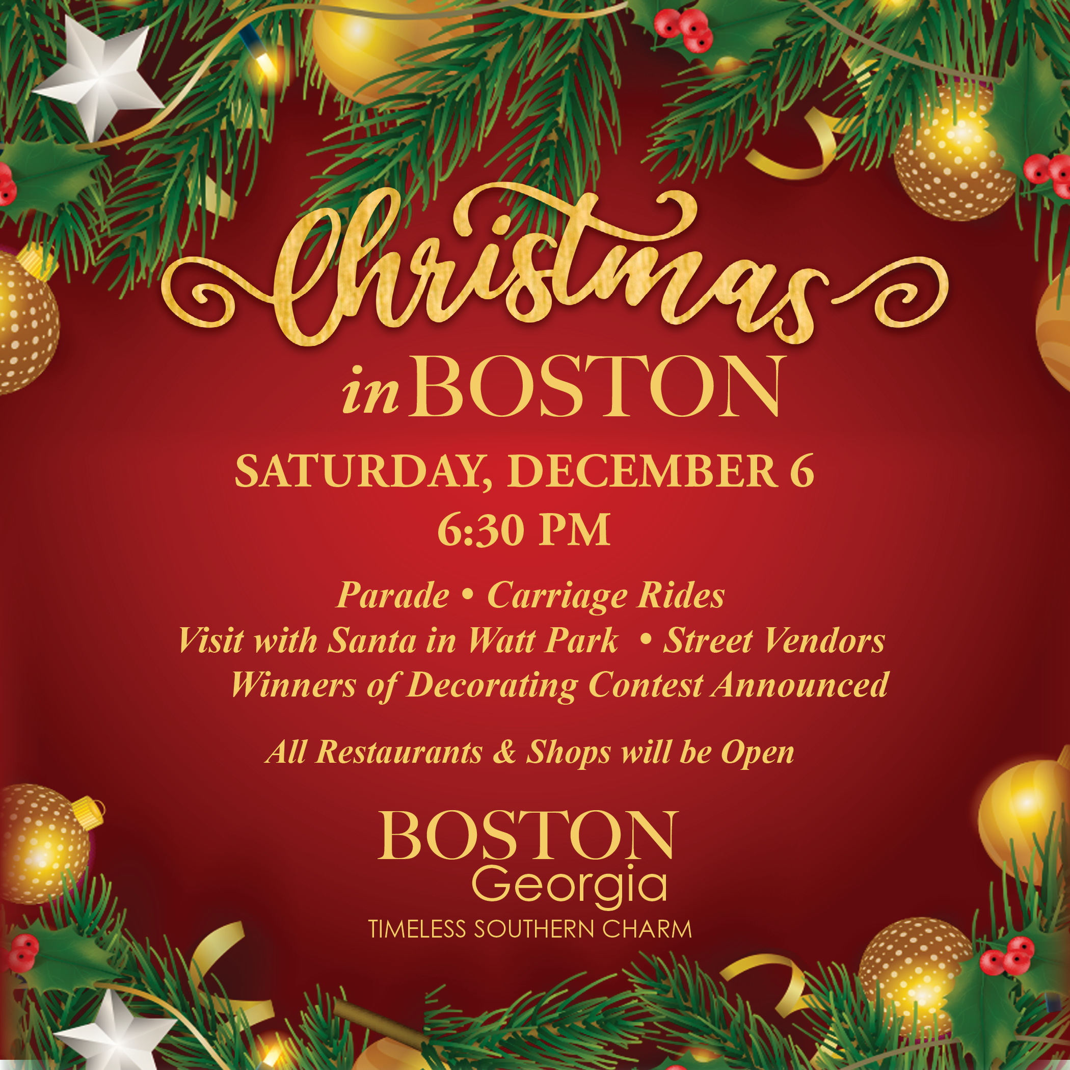 Join us in Downtown Boston, GA to kick off the Christmas Season!
